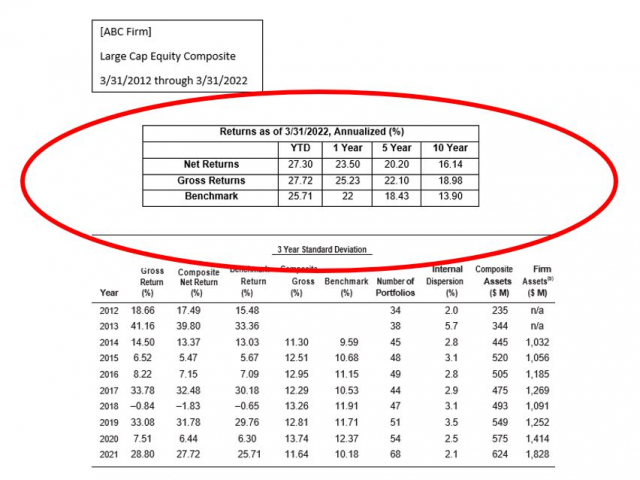 - If the GIPS Report is used as a standalone advertisement, 1-, 5- and 10-year net returns must be added to meet the SEC requirement.